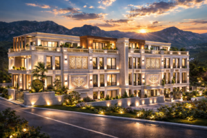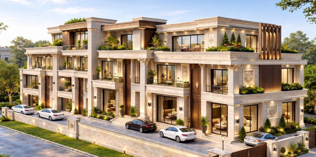 A collection of four high-end attached villas featuring spacious layouts, private swimming pools, and dedicated elevators for enhanced comfort and accessibility. Each villa is designed with timeless architectural character, refined materials, and fully integrated engineering solutions. Carefully planned spaces, high-quality finishes, and premium amenities create an elevated residential experience with strong long-term value.
